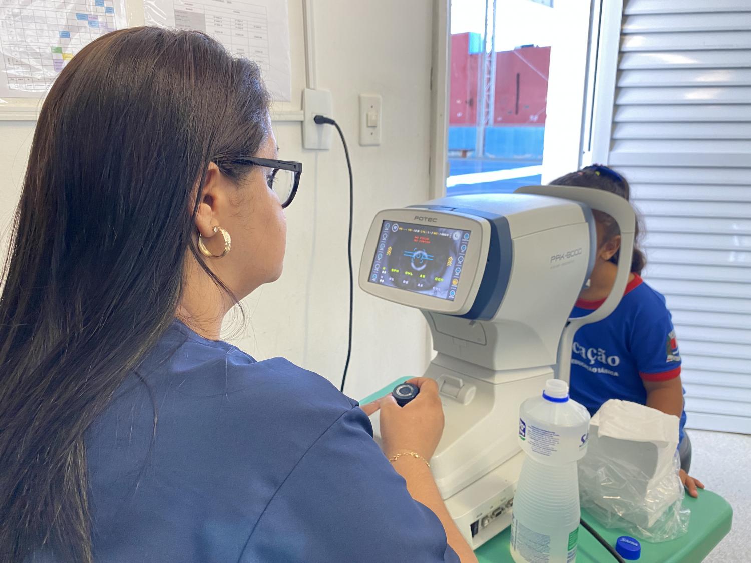A aferição é realizada no aparelho Auto Refrator e as crianças menores, que não conseguem focar no aparelho, passam pelo Kaleidos. Os dois aparelhos são capazes de fazer a aferição da refração binocular em segundos. Após a avaliação os alunos que apresentarem astigmatismo, miopia, astigmatismo, entre outros serão encaminhados para a consulta oftalmológica com prioridade.