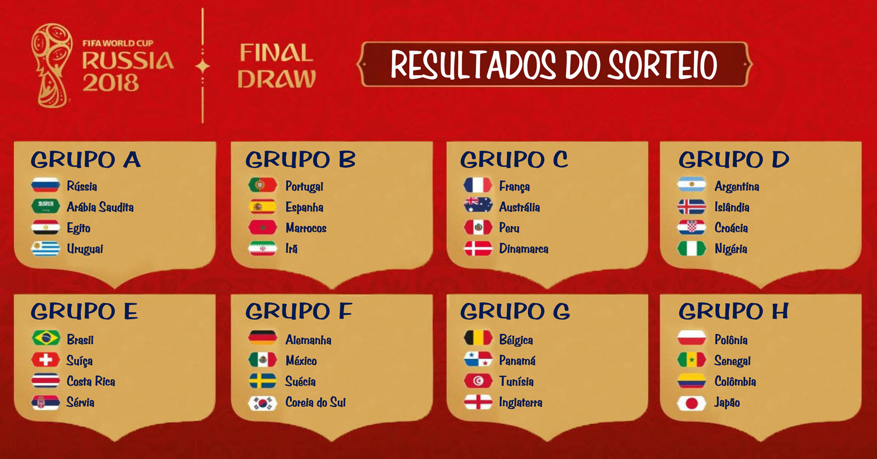 O sorteio que definiu as chaves do torneio na Rússia aconteceu nesta sexta-feira, dia 1º, na Rússia. A Seleção Brasileira está no Grupo E da Copa do Mundo, ao lado de Suíça, Costa Rica e Sérvia.