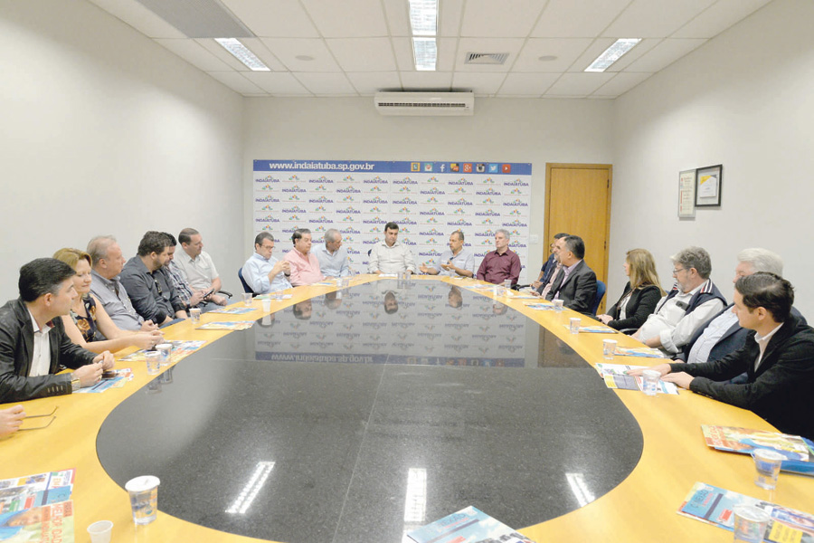 reunião O prefeito de Indaiatuba, Nilson Gaspar (PMDB) recebeu na manhã de terça-feira (1º) em seu Gabinete, representantes de 18 empresas de Indaiatuba com o objetivo de estreitar a relação entre o Poder Público e a Iniciativa Privada. O secretário de Governo, Renato Stocchi, e a assessora Marta Prado, também recepcionaram os convidados. Na ocasião, foram apresentados os dados de Indaiatuba referente à Economia, Infraestrutura e Desenvolvimento. Este foi o segundo encontro do ano.imag