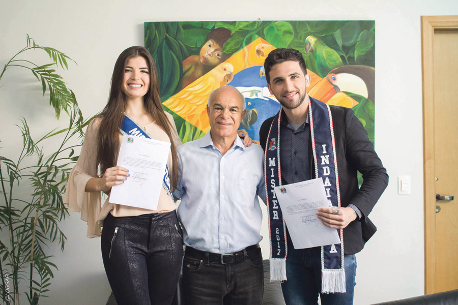 REUNIÃO O Prefeito em Exercício Dr. Antônio Carlos Pinheiro oficializou, nesta semana, o Mister Indaiatuba Wesley Ometto e a Miss Indaiatuba Letícia Barbosa como representantes do município e embaixadores do Programa Viver de Prevenção e Combate às Drogas. O encontro aconteceu no gabinete