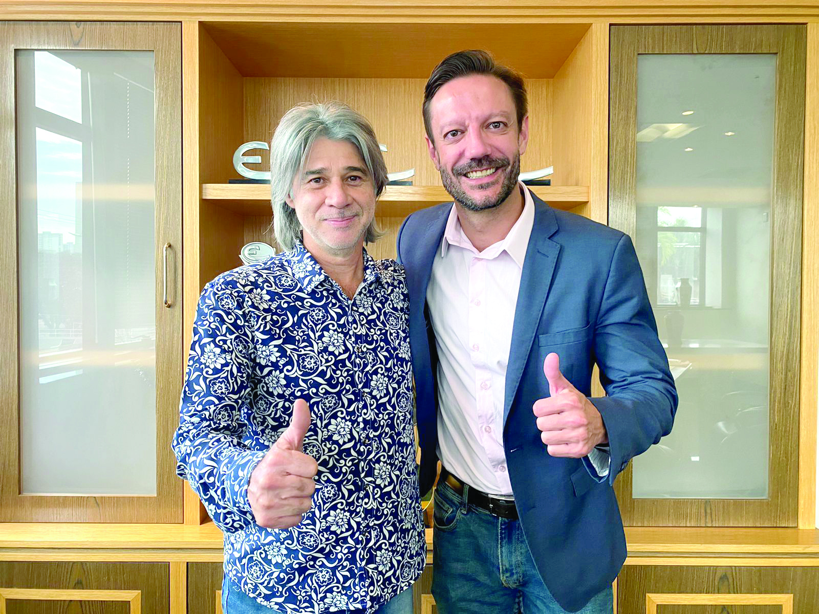 VISITA: O presidente do Grupo AWR, Aluísio William, recebeu nessa semana Fina Finessi, pré-candidato a Deputado Estadual pelo PL (Partido Liberal) de Sorocaba. Foto: Jornal Exemplo/Nova Metrópole
