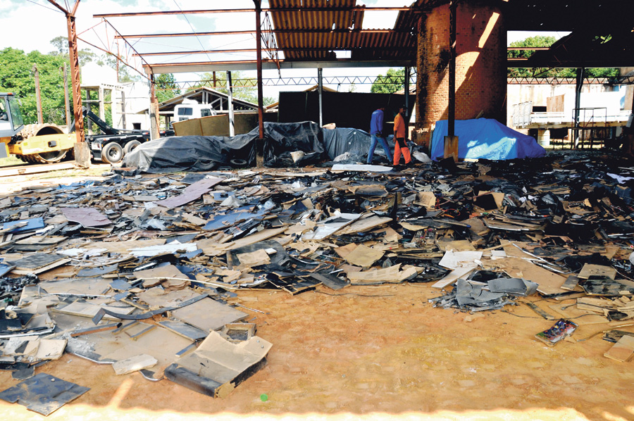 EQUIPE MOBILIZADA Em uma parceria entre a Delegacia de Polícia de Indaiatuba e Prefeitura, mais de 480 equipamentos, entre caça-níqueis e monitores apreendidos durante ocorrências, em um acumulativo de um ano aproximadamente, foram triturados na tarde de quarta-feira (21).