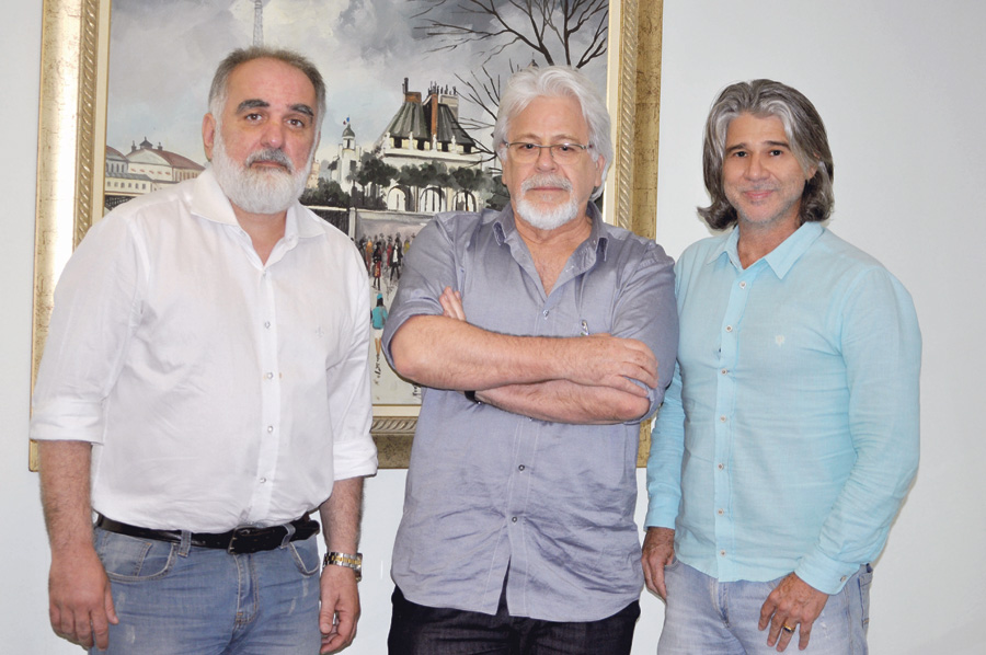 VISITA O presidente do Grupo AWR®, Aluísio William, recepciona o engenheiro Hamilton Lombardi e o arquiteto Jair Valera, que trabalhou durante três décadas com o saudoso Oscar Niemeyer