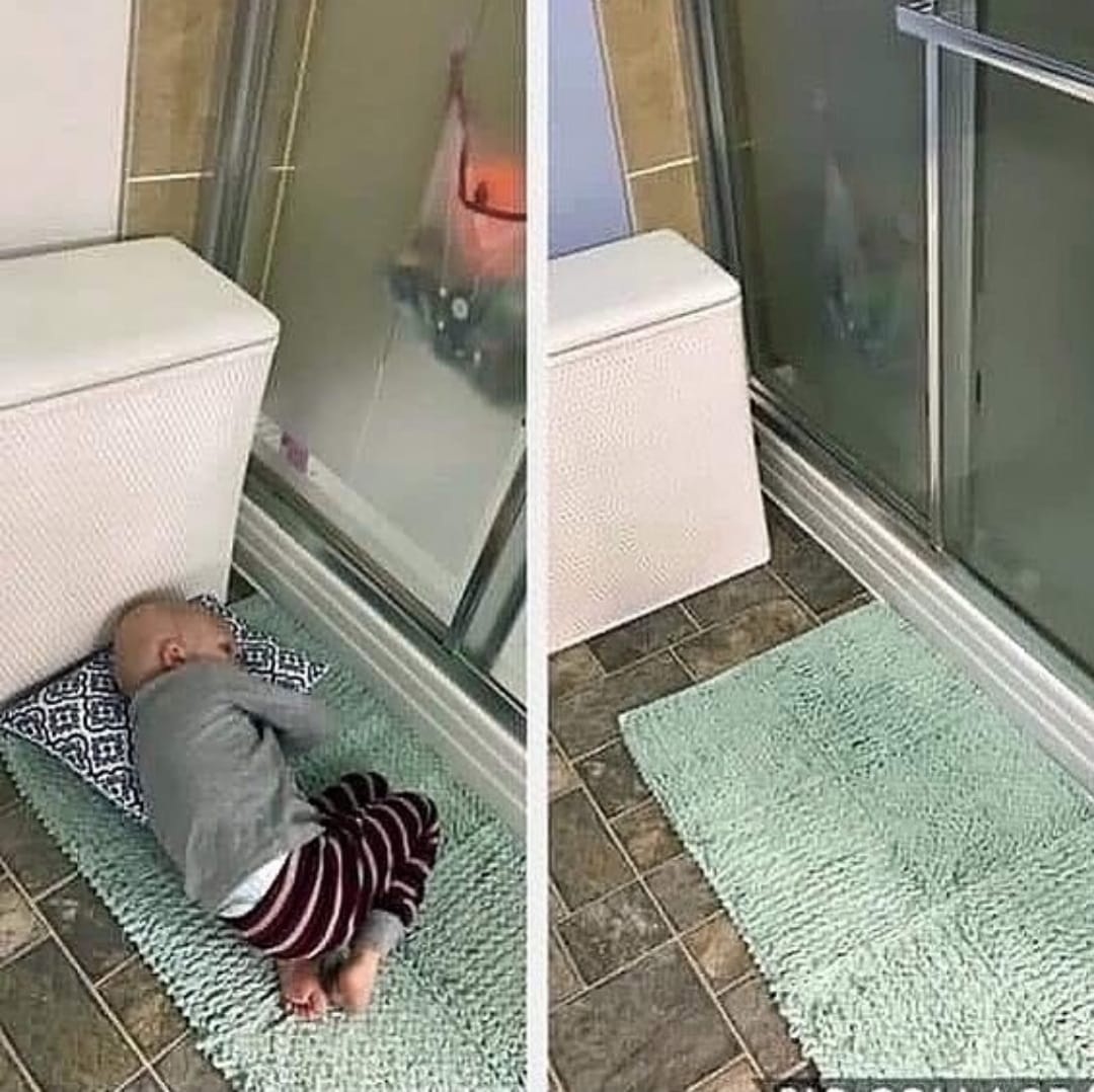São duas as imagens que a mãe compartilhou. Em um delas, ele é visto deitado no tapete do banheiro, enquanto sua mãe tomava banho e na outra, o mesmo tapete, mas sem Emilio.