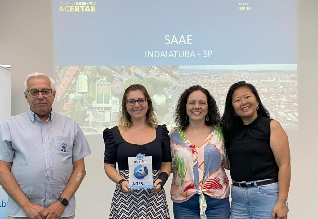 A cerimônia de premiação ocorreu no dia 11 de março, na sede da ARES-PCJ em Americana (SP), e marcou a transição do 4º para o 5º ciclo da metodologia ACERTAR. Representando o Saae, estiveram presentes Juliana Tomásio Apolinário da Luz (Técnica em Edificações do Departamento de Planejamento), Karoline Monaro (Diretoria do Departamento de Planejamento) e Elen Kazuko Miyamoto (Analista Técnica Administrativa).