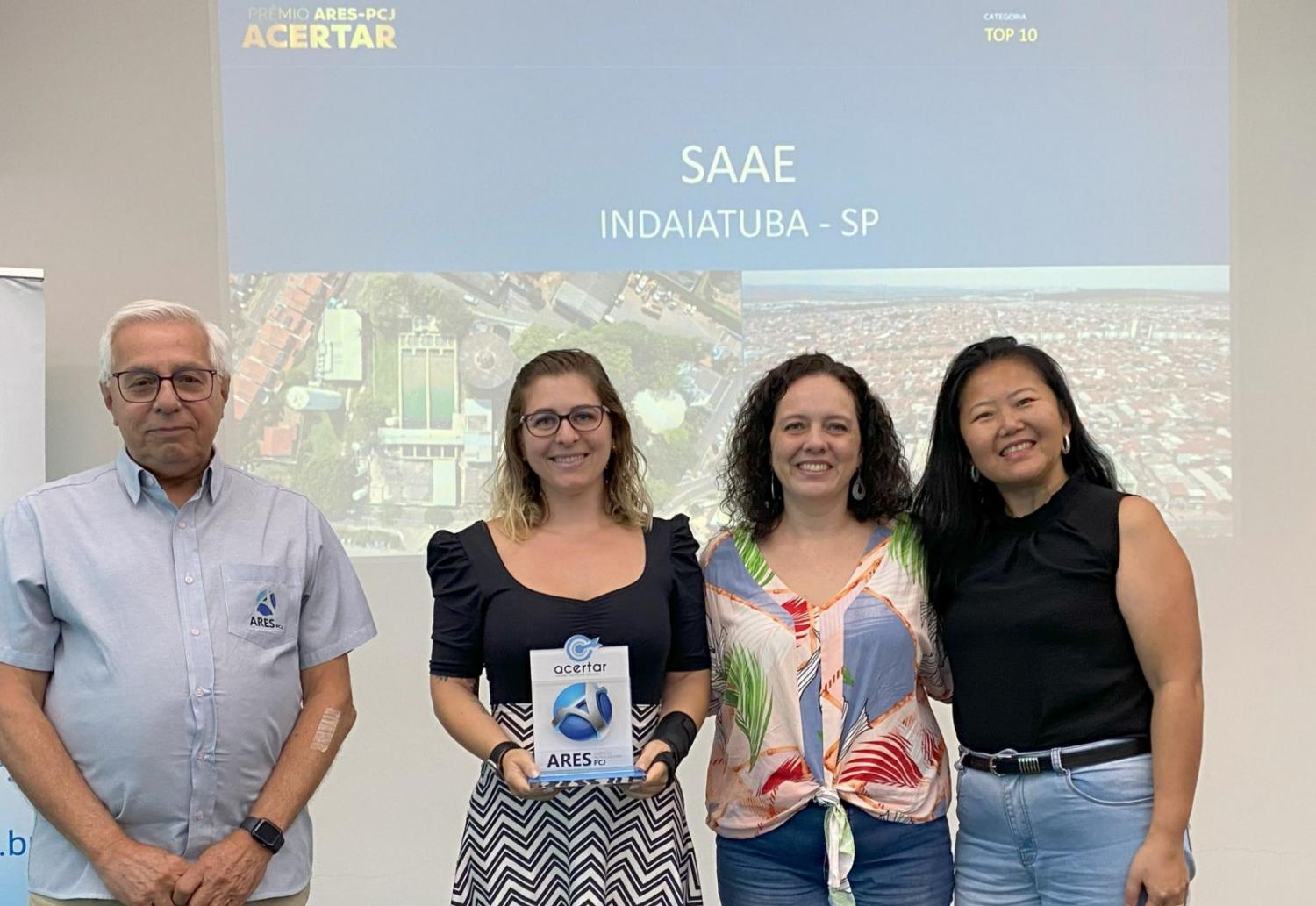 A cerimônia de premiação ocorreu no dia 11 de março, na sede da ARES-PCJ em Americana (SP), e marcou a transição do 4º para o 5º ciclo da metodologia ACERTAR. Representando o Saae, estiveram presentes Juliana Tomásio Apolinário da Luz (Técnica em Edificações do Departamento de Planejamento), Karoline Monaro (Diretoria do Departamento de Planejamento) e Elen Kazuko Miyamoto (Analista Técnica Administrativa).
